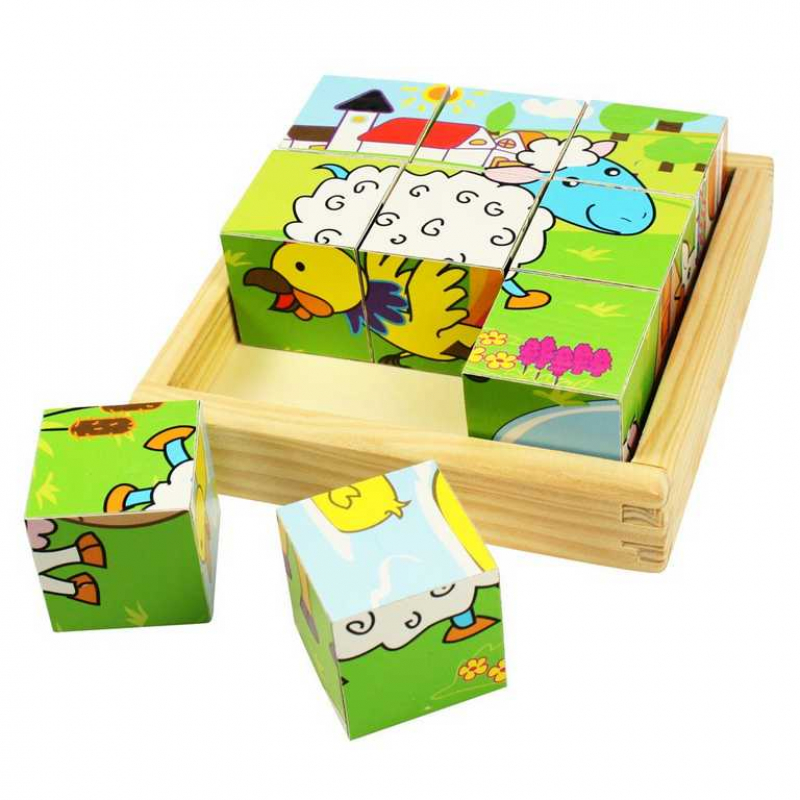 Devět dřevěných kostek vytváří šest různých obrázků. Otočte každou kostkou a vytvořte obrázek, nebo je smíchejte pro zábavu! Každý kus robustní dřevěné skl&aac Celý popis produktu