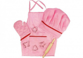 Právě se Vaše děti můžou začít učit péct a vytvářet nové věci díky naší sadě která obsahuje mnoha věcí: - kompletní růžové oblečení šéfkuchaře - 56 cm dlouhá zástěra, rukavice a čepice - sada formiček 4 ks - dřevěný váleček Naučit se vařit a péc...