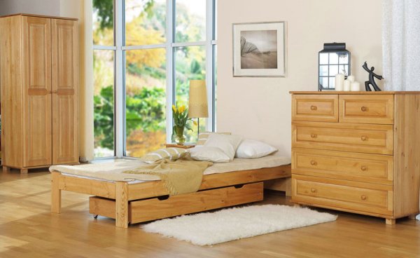 Rozměrové značení postele zároveň určuje velikost otvoru pro matraci, resp. rozměr matrace. K těmto postelím nabízíme v samostatných sekcích matrace, noční stolky, šuplíky, komody a další produkty z masivu.