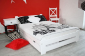 Postele z masivu všech rozměrů, různých barevných kombinací, plná čela, příčková čela, komody, rošty. Rozměry postelí 80x200, 90x200, 120x200, 140x200, 160x200, 180x200. K těmto kvalitním postelím z masivu nabízíme širokou škálu matrací, nočních stolků a šuplíků.