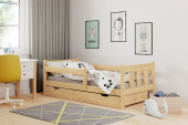 Dětská postel je vyrobena z masivu borovice. Postel nejen pro větší děti s ochrannou bariérkou. Bariérku je možno namontovat jak z levé, tak i z pravé strany. Součástí této postýlky je matrace PUR pěna s potahem. Potah této matrace je snímatelný a pratelný. Postel je vyrobena z ...